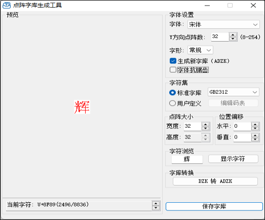 圖4 點(diǎn)陣字庫(kù)生成工具